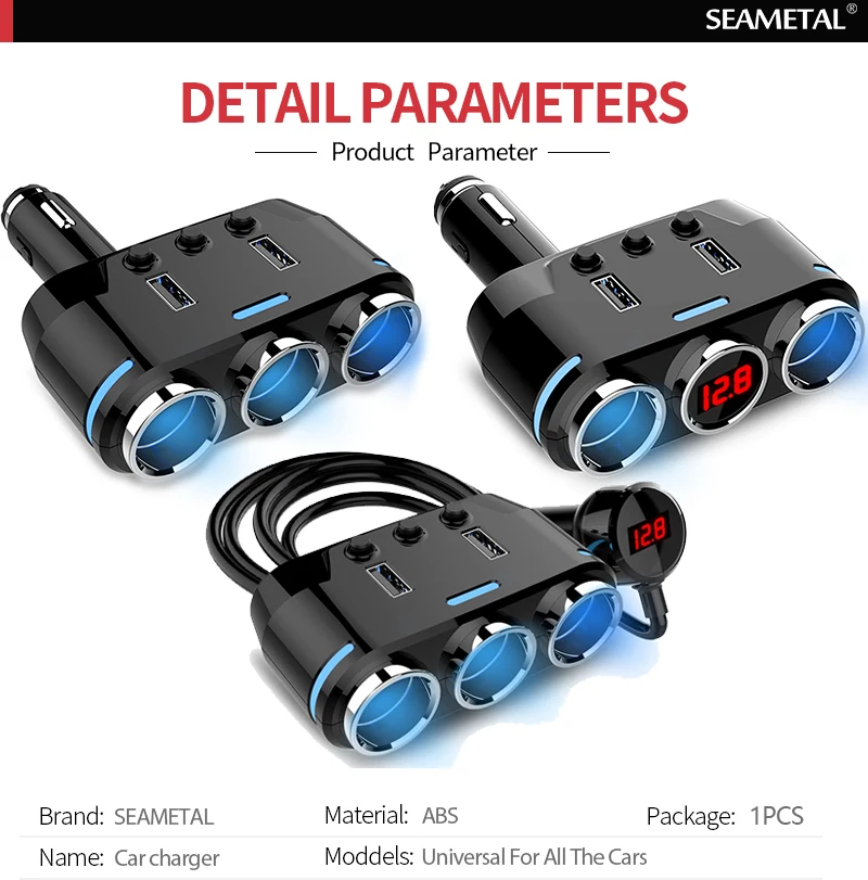 The Cigarette Lighter combines 3 cigarette lighter sockets with 2 USB charging port to convert the cigarette lighter into a multi-functional power adapter to support charging for multiple devices at the same time.